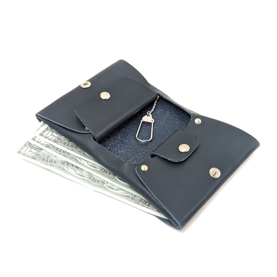 開くと小銭入れとカードポケットが備わっています。(カードポケットはクレジット/キャッシュカードサイズで約5枚重ねて収納可能)