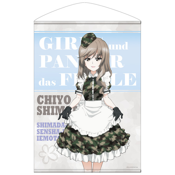 ミリタリー風のメイド服を身にまとった島田千代のタペストリー